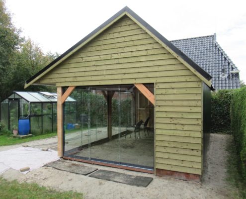Heeft u interesse in een houten berging met een luifel? Neem dan gerust contact met ons op via het contactformulier.